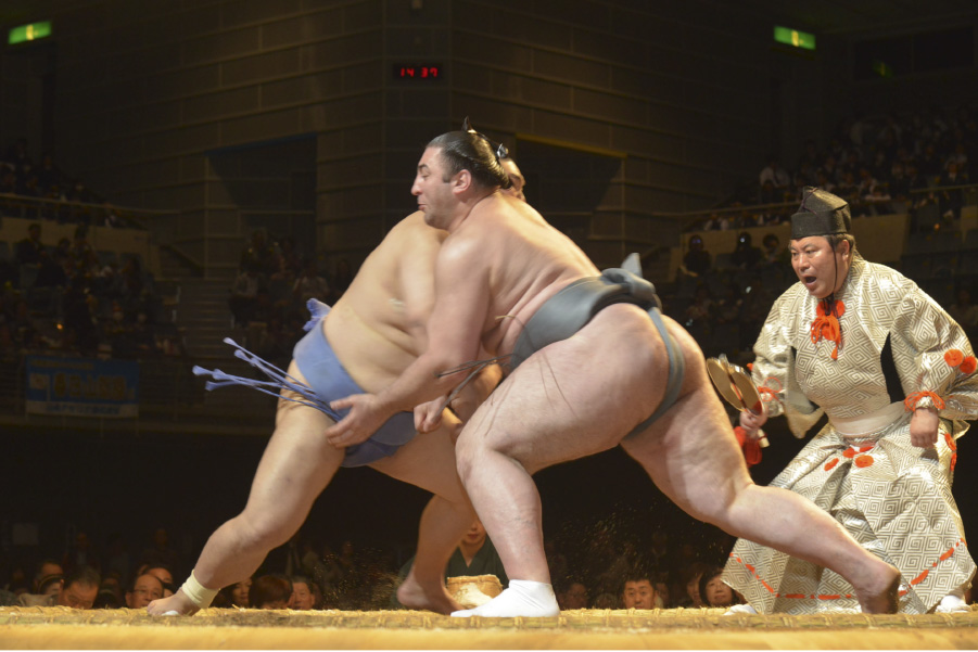続いて、相撲界No.1とサッカー界No.1の最初で最後の取組です。歴史的瞬間に会場内は大いに沸きました。